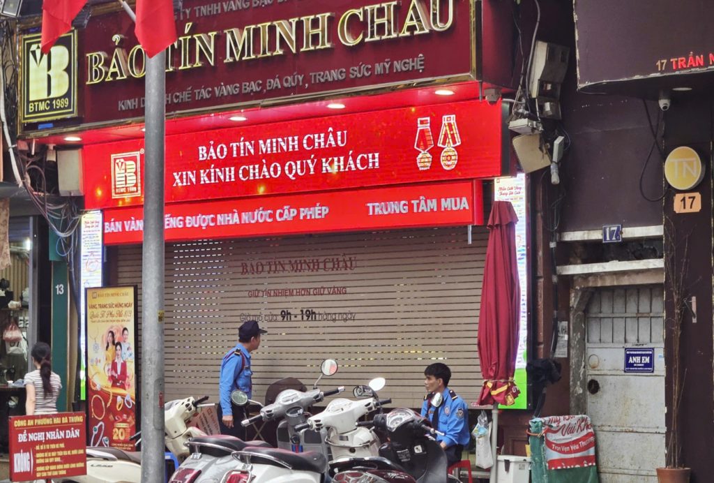 Lực lượng cảnh sát cơ động xuất hiện tại hai cơ sở vàng bạc Bảo Tín Minh Châu ở Hà Nội, giao dịch mua bán tạm dừng.