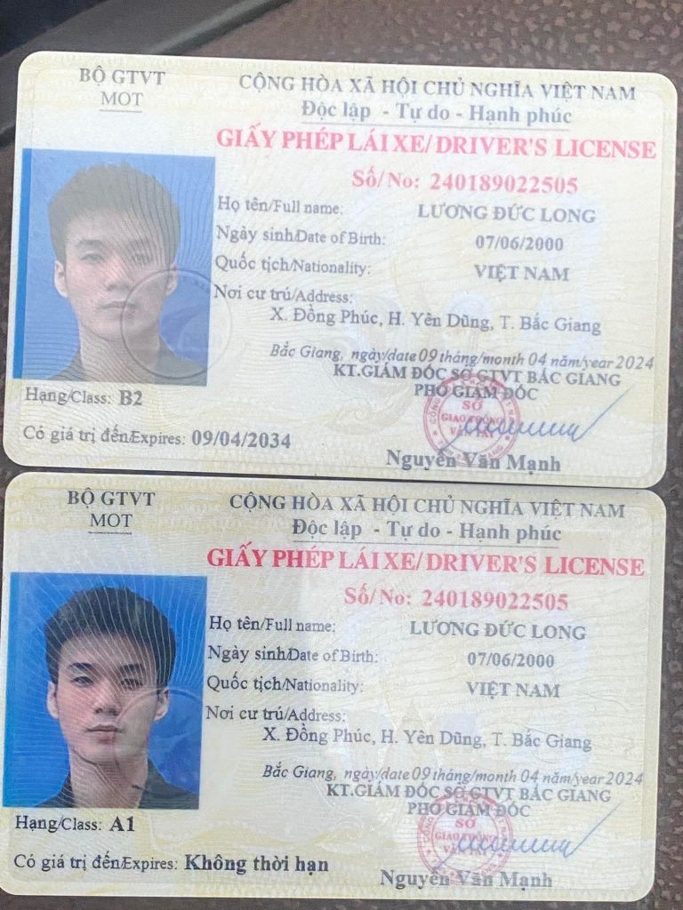 Mình có nhặt được 2 cái bằng lái xe bạn nào biết bạn này bảo gặp mình cho xin lại nhé. Sđt :0986485983