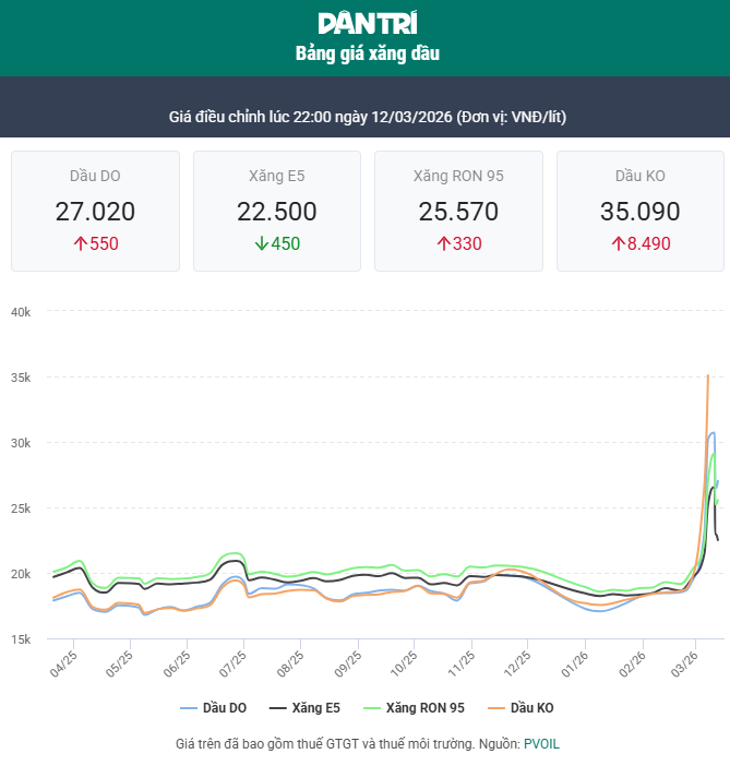 Giá xăng dầu tăng từ 23h, RON 95 tăng hơn 5.000 đồng/lít