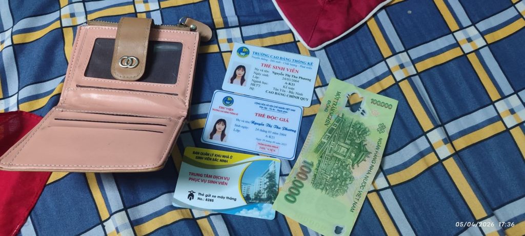 Mình nhặt được cái ví tại công viên hồ điều hòa bắc ninh của ai làm rơi gặp em lấy nhé