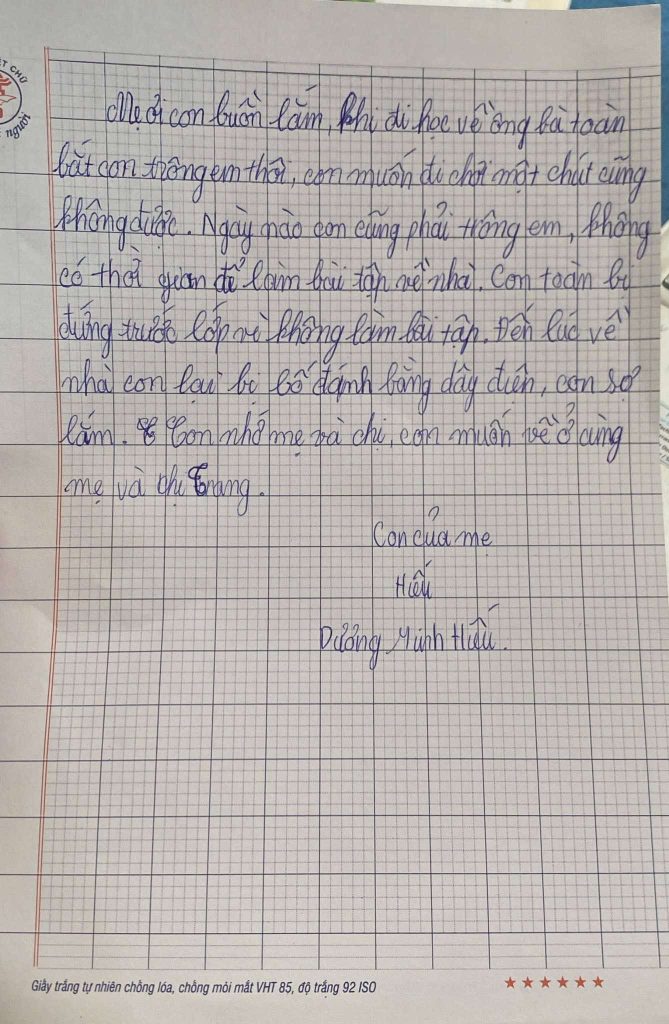 Lá thư được cho là của cháu bé gửi cho mẹ