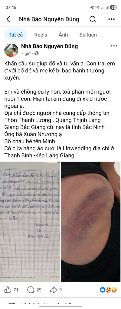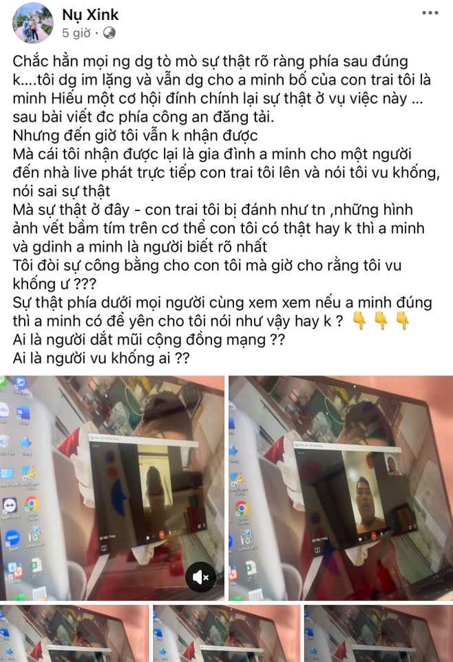 Do bị đánh, cháu Hiếu đã nói chuyện với mẹ là chị Đồng Thị Nụ hiện đang làm việc tại nước ngoài (đã ly hôn với anh Minh năm 2019).
