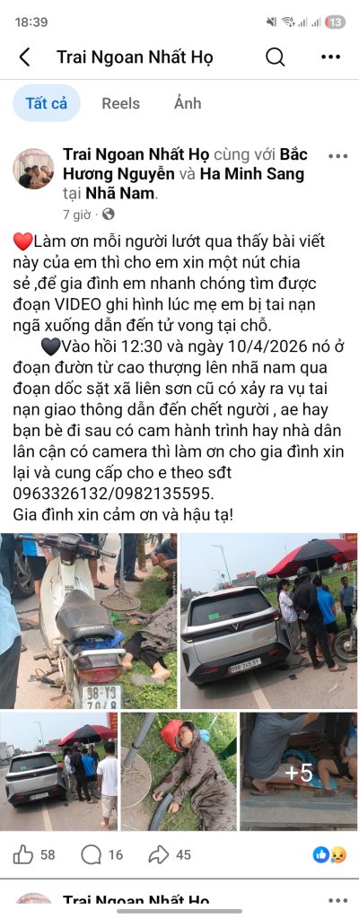 Va chạm xe tại Liên Sơn Tân Yên Bắc Giang cũ gần trường học Liên Sơn xóm Quân người phụ nữ ở đình Hà Tân Trung nguy kịch có khả năng không qua khỏi