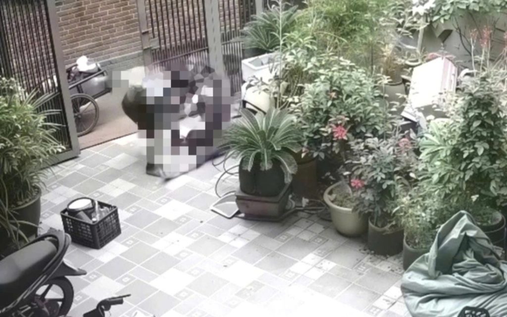Ngay cả khi nạn nhân ngã xuống sân, người này vẫn kéo vợ trên mặt đất vào trong nhà rồi tiếp tục hành hung, trong khi người phụ nữ gần như không còn khả năng chống cự.