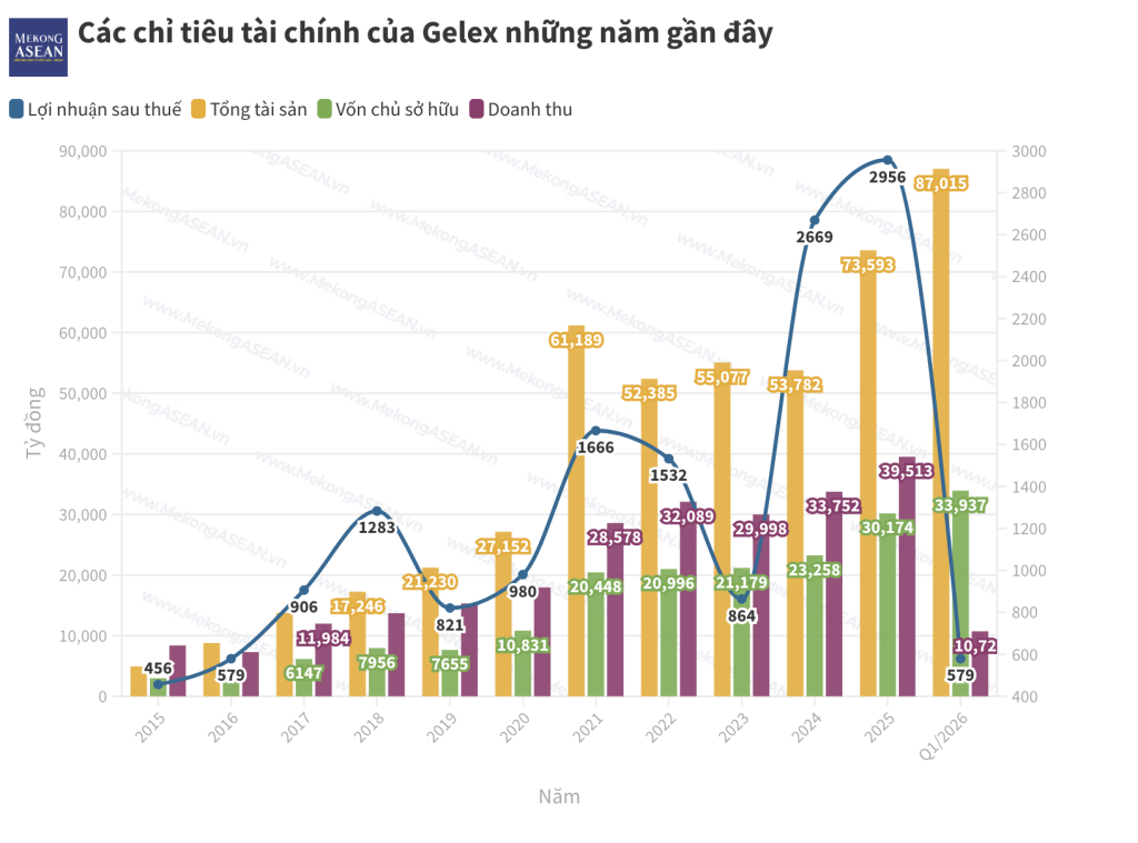 Quý 1/2026, Gelex ghi nhận tổng tài sản vượt 87.000 tỷ đồng – mức cao nhất lịch sử, đồng thời rót hơn 8.000 tỷ đồng vào liên doanh với Masterise tại dự án sân bay Gia Bình.